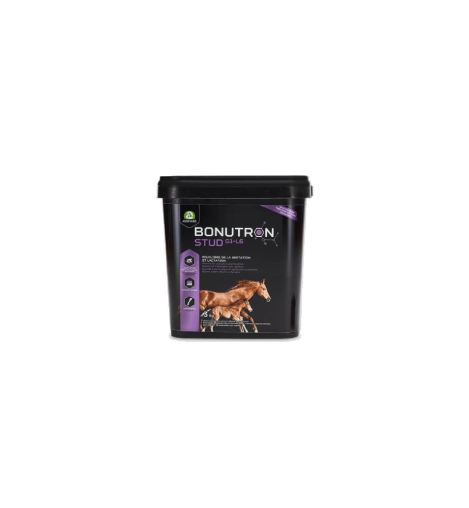 Audevard Bonutron Stud GL-16 is een voedingssupplement dat ingezet kan worden ter ondersteuning van fokmerries gedurende de dracht en de lactatie. De Audevard Bonutron Stud GL-16 bevat hoge concentraties aan calclium en vitamine-D om de ontwikkeling van het veulen te bevorderen. Audevard Bonutron Stud GL-16 kan ook aan zogende veulens (tot een leeftijd van 6 maanden) gegeven worden.