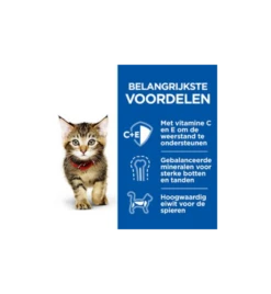 Kip (35%), Varken, Erwteneiwit, Rijstebloem, Gedroogd eiwit, Lijnzaadolie, Cellulose, Maïsdextrine, Mineralen, Vitaminen, Visolie, Taurine, Sporenelementen en bèta-caroteen. Gekleurd met natuurlijk karamel.