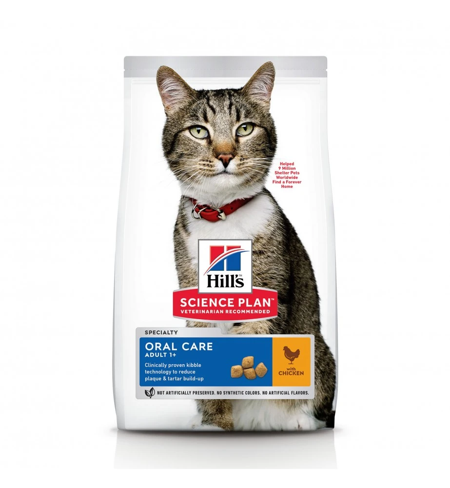 Hill’s Science Plan Oral Care kattenbrokjes bevatten een klinisch bewezen technologie om de opbouw van tandplak en tandsteen te verminderen.