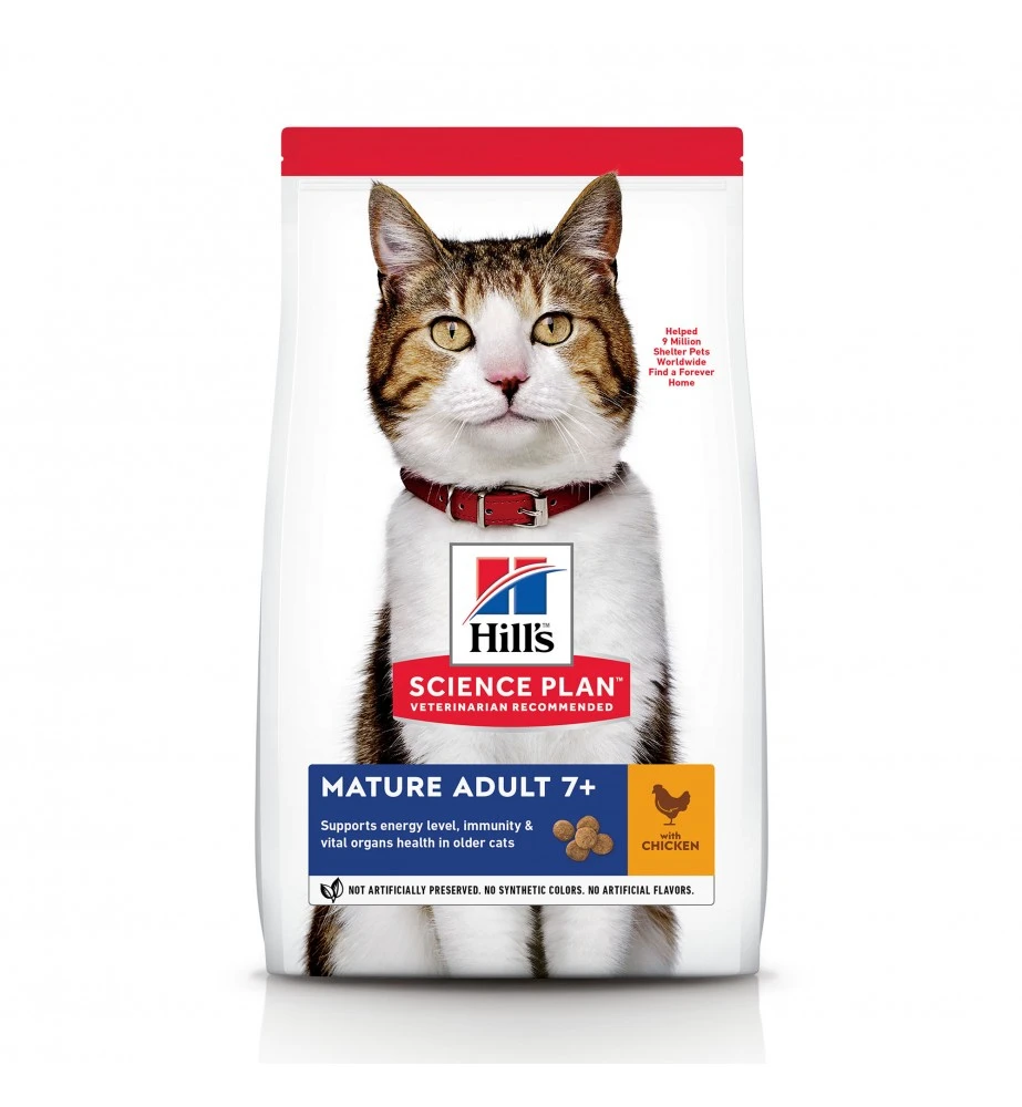 Hill’s Science Plan Mature Adult 7+ is een droogvoeding op basis van kip die er voor zorgt dat je kat op een elegante manier ouder kan worden. Het heeft een synergetische mix van ingrediënten om het energie- en activiteitenniveau te helpen ondersteunen.
