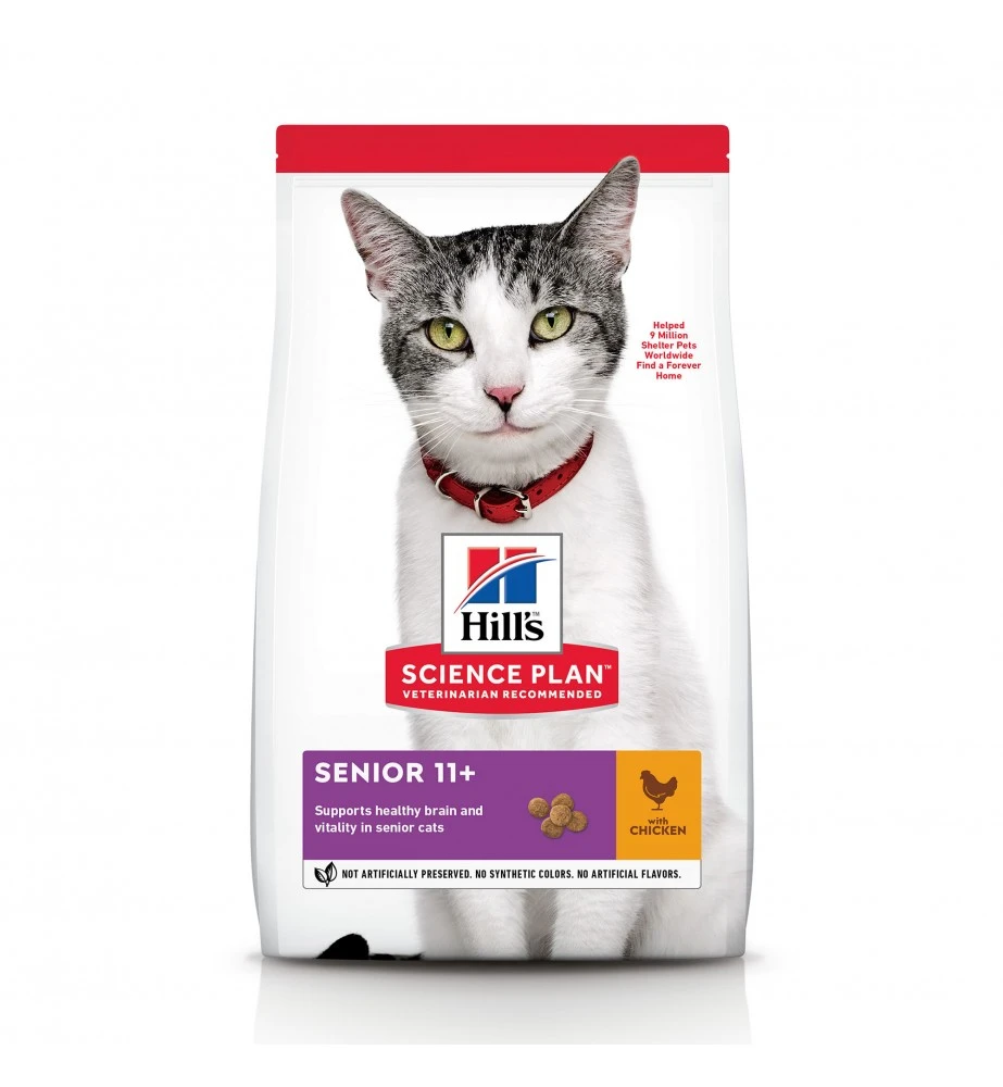 Hill’s Science Plan Senior Adult 11+ is een droogvoeding op basis van kip ondersteunt de gezonde hersenen en vitaliteit bij senior katten gedurende hun gouden jaren. Bevat een speciale mix om oudere katten vitaal, alerter en interactiever te houden.