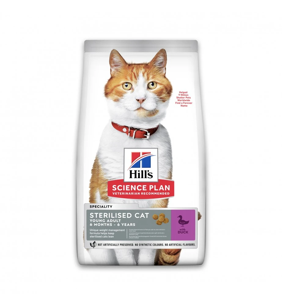 Hill’s Science Plan Sterilised Cat Young Adult droge kattenbrokjes hebben een unieke samenstelling voor gewichtscontrole om gecastreerde/gesteriliseerde katten slank te houden. Gemaakt met licht verteerbare ingrediënten van hoge kwaliteit.