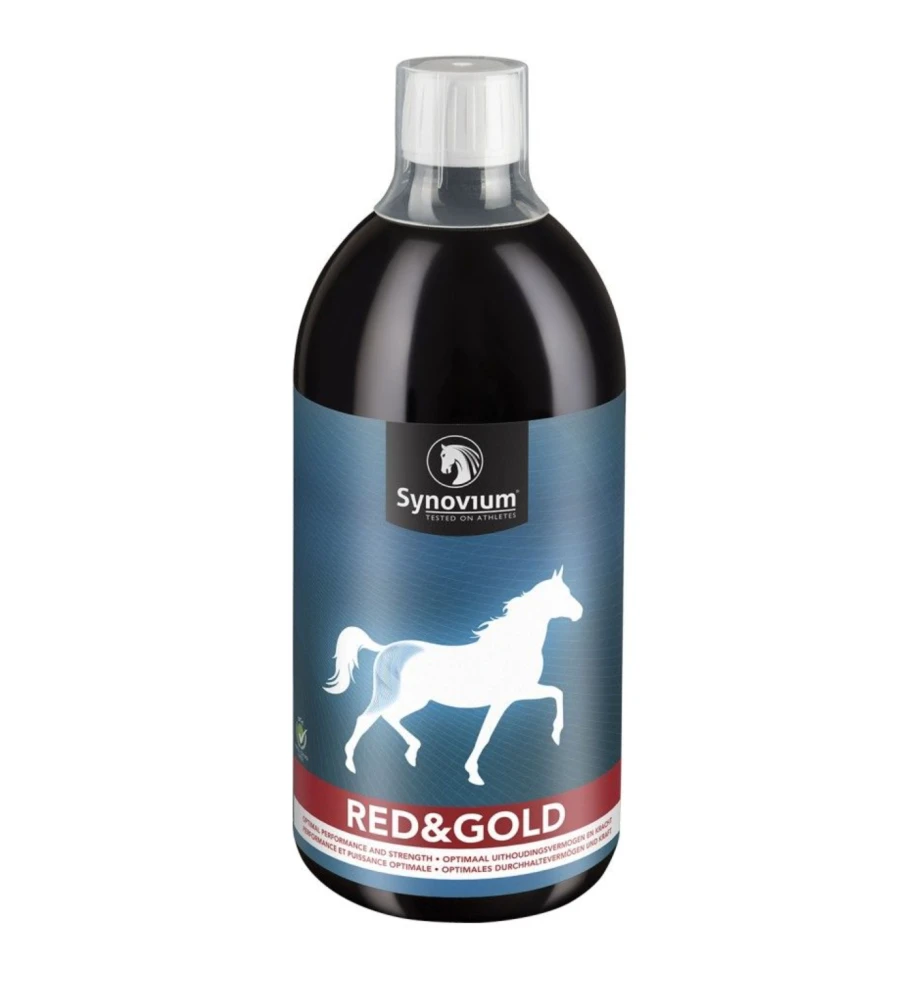 Synovium Red & Gold is een voedingssupplement voor paarden (en veulens) dat rijk is aan vitaminen, mineralen en ijzer ter ondersteuning van de spieren, organen en weefsels. Synovium Red & Gold zorgt voor een verhoging van de algemene weerstand en energie bij verhoogde inspanning.